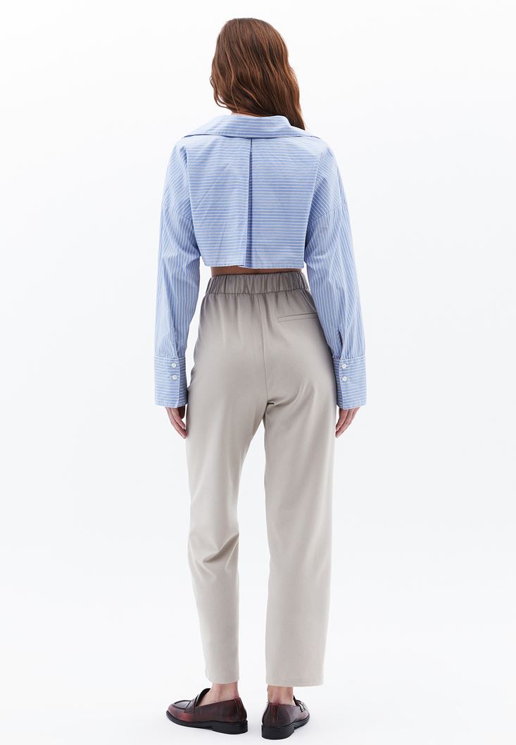 Bej Yüksek Bel Carrot-Fit Pantolon