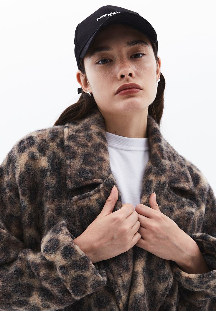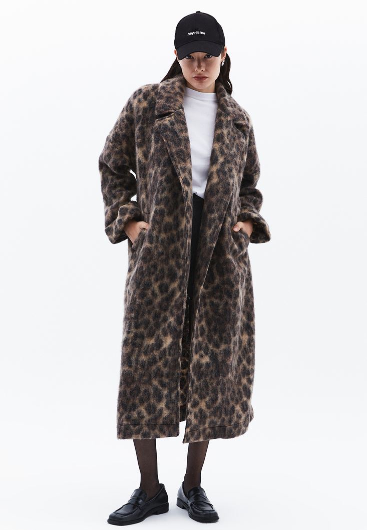 Çok Renkli Leopar Desenli Yün Karışımlı Kaban, modern leopar desenli tasarımı ve yün karışımı kumaşıyla şıklığı ve sıcaklığı bir arada sunar. Cesur ve şık bir tercih!