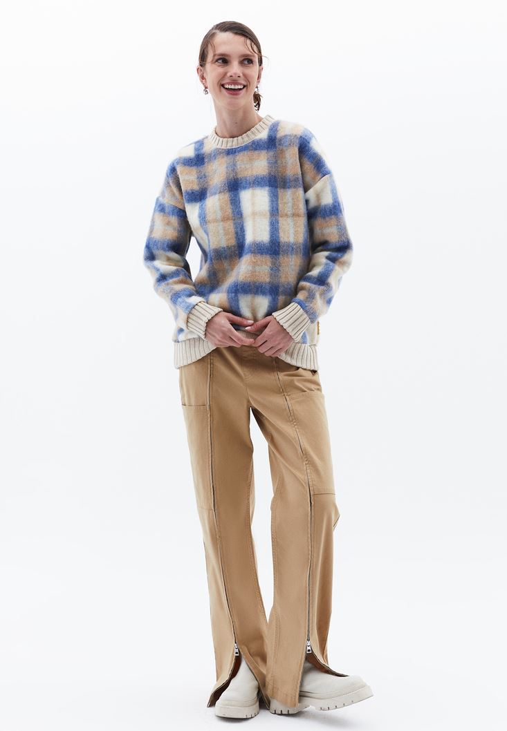 Çok Renkli Yün Karışımlı Oversize Sweatshirt, rahat oversize kesimi ve şık renk kombinasyonlarıyla şıklığı ve konforu bir arada sunar.