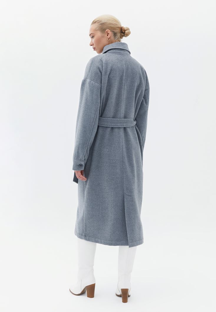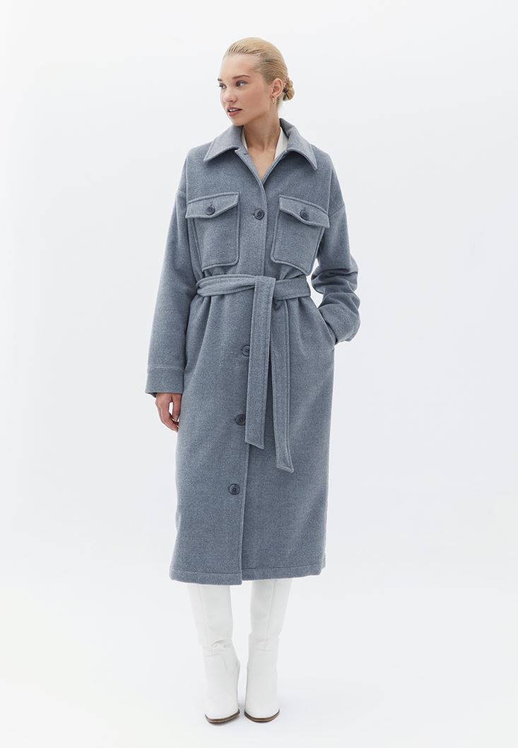 Gri Yün Karışımlı Kemerli Kaban, zarif tasarımı ve kemer detayıyla hem şıklık hem de sıcaklık sunar. Yün karışımı kumaşıyla kış aylarında mükemmel bir tercihtir.