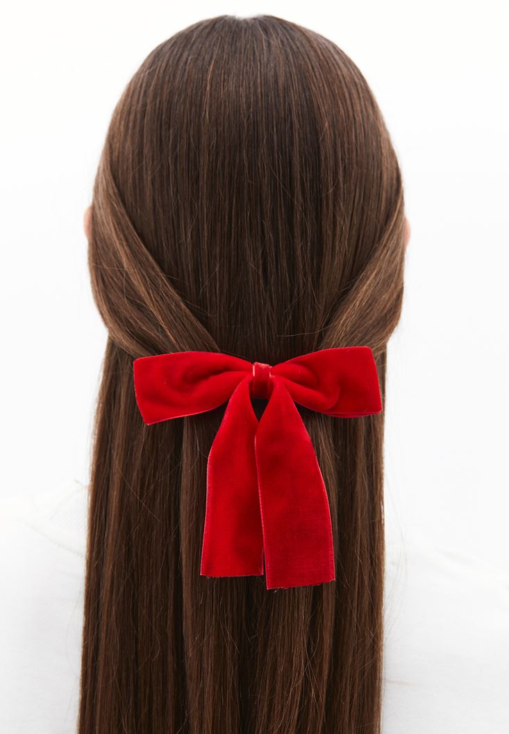 Kırmızı Fiyonk Detaylı Saç Tokası, zarif fiyonk detayı ve canlı kırmızı rengiyle saçlarınıza şıklık katar.