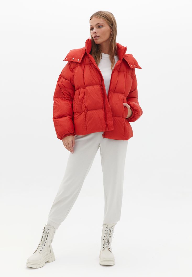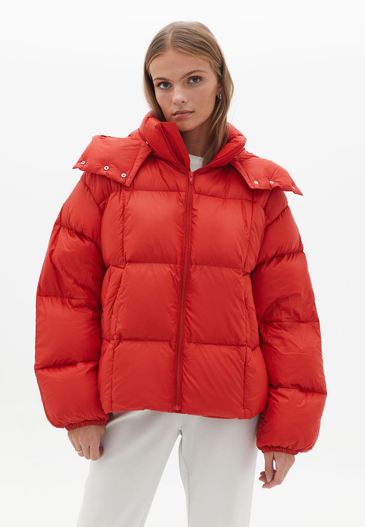 Kırmızı Kaz Tüyü Oversize Şişme Mont
