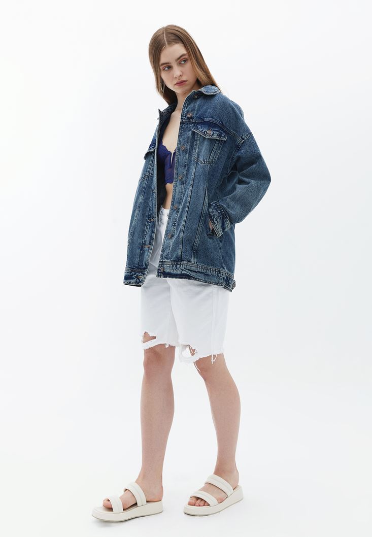 Mavi Yaka Detaylı Dantel Bralet