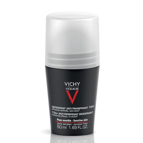 Vichy Homme Anti-Perspirant 72Hr Roll-On Deodorant 50 ml, 72 saat süresince terlemeye karşı güçlü koruma sağlar ve ferah bir koku bırakır. Erkekler için ideal deodorant.