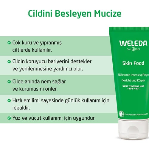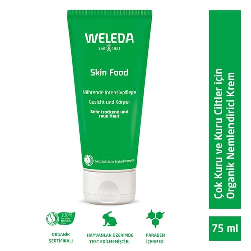 Weleda Skin Food 75ml, kuru ve çok kuru ciltler için organik nemlendirici ve besleyici bakım sunar. Cildinizi derinlemesine nemlendirir ve doğal bir ışıltı kazandırır.